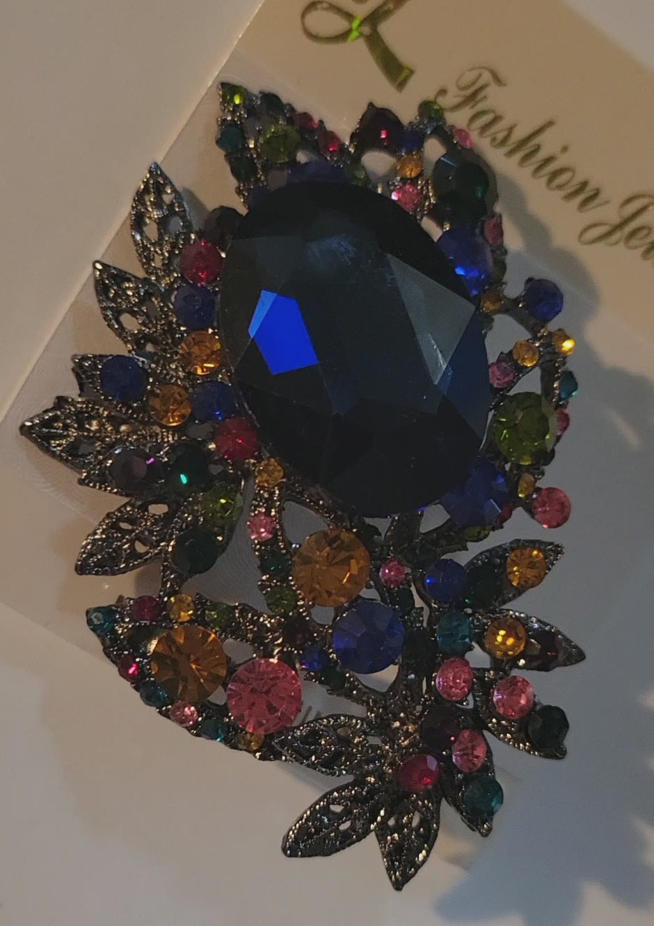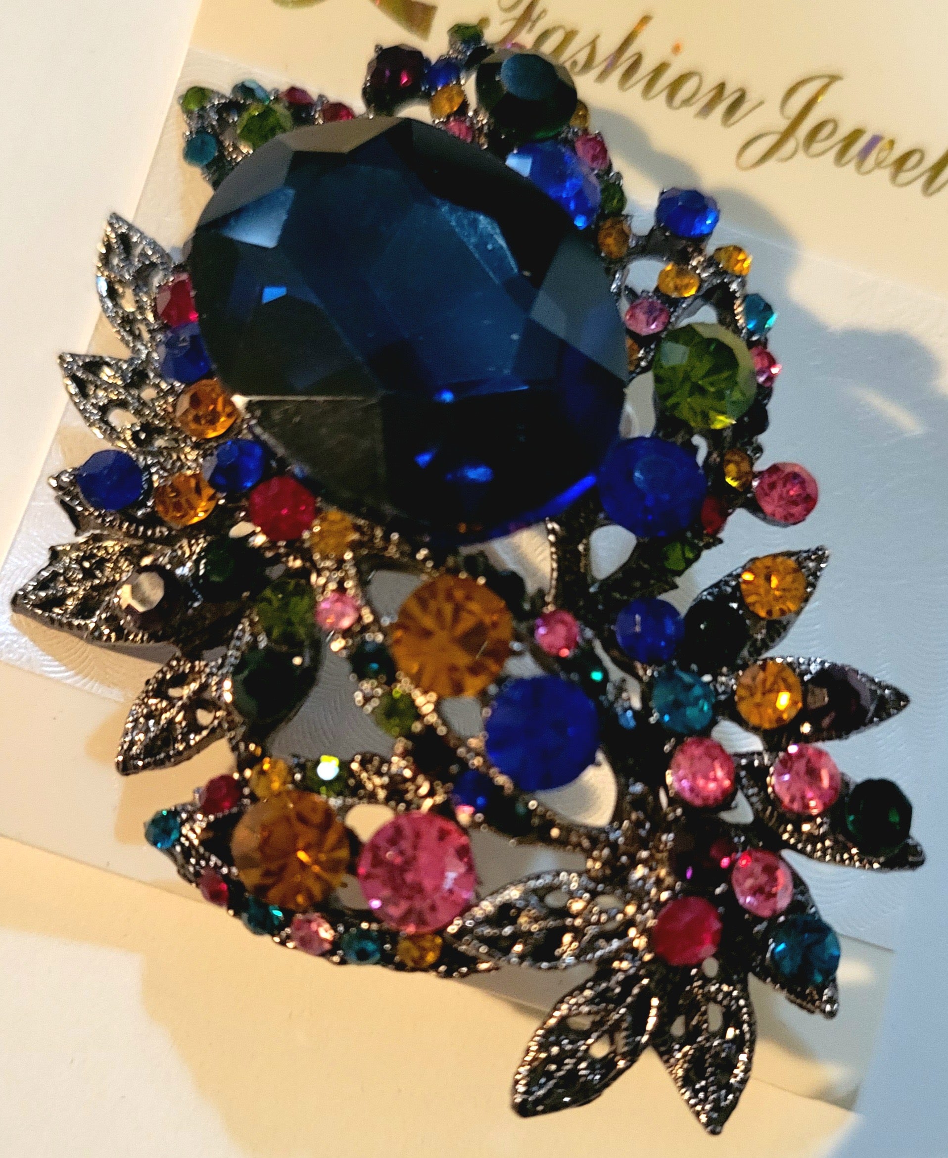 Lovely multi-color stone clothing pin. Assorted to replica a beautiful bouquet.
