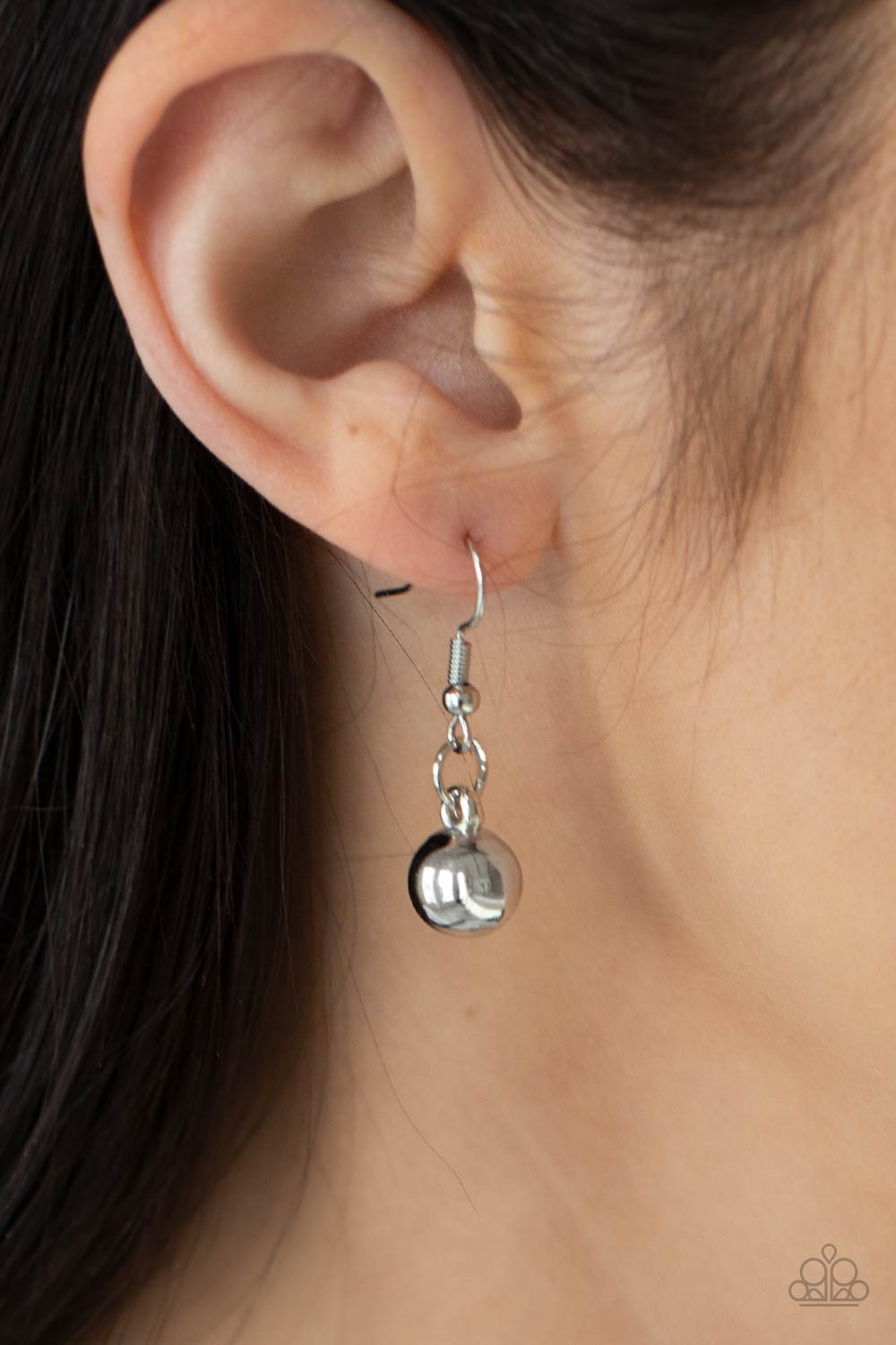 Two rows of dainty silver beads and cylindrical rods are threaded along strands of shiny black cording that has been knotted in place, creating edgy rows across the chest. Features a magnetic closure.