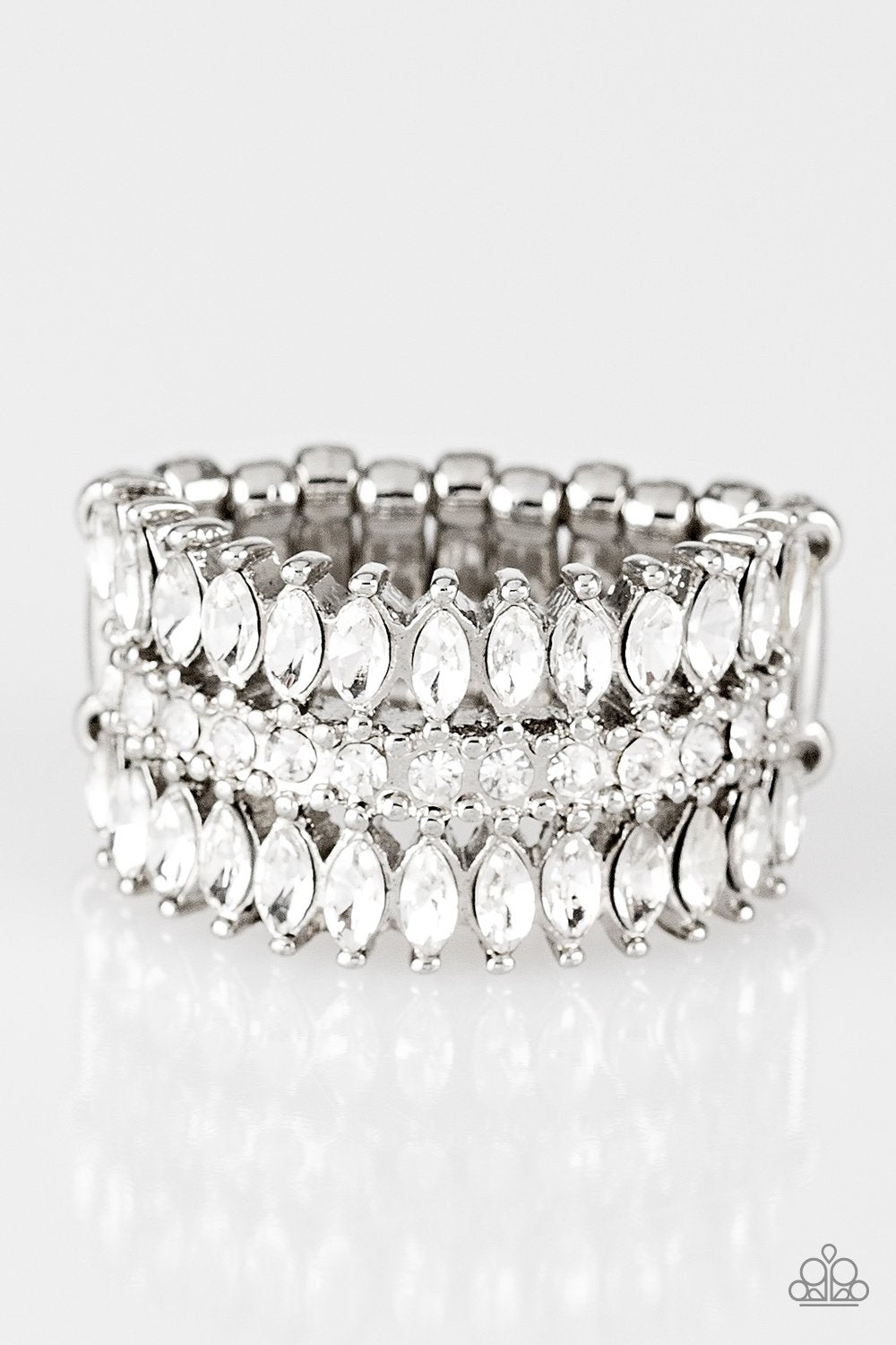 Featuring refined marquise cuts, glittery blue rhinestones flare from a center of glassy white rhinestones, creating a regal band across the finger. Features a stretchy band for a flexible fit.
