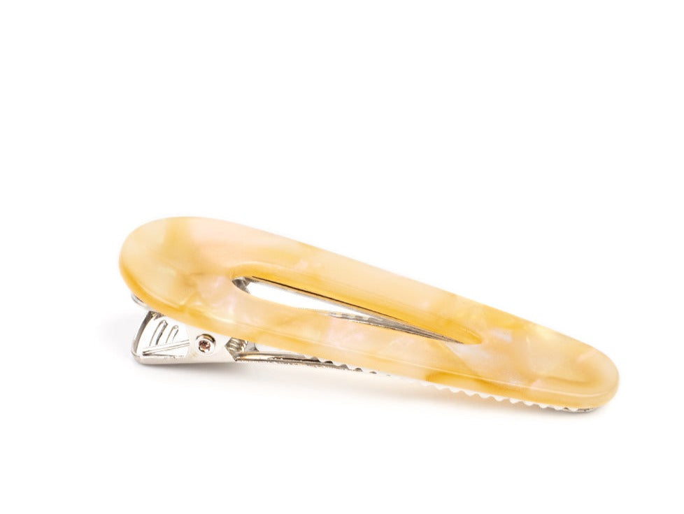 Featuring a shell-like iridescence, a yellow frame pulls back the hair for a colorful retro look. Features a standard hair clip on the back.